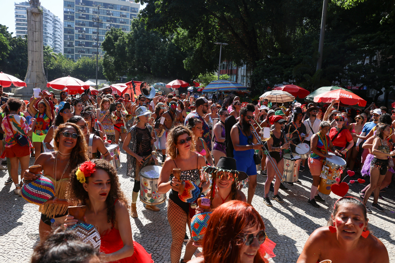 Bloco Mulheres Rodadas se apresenta no Largo do Machado, na zona sul do Rio de Janeiro