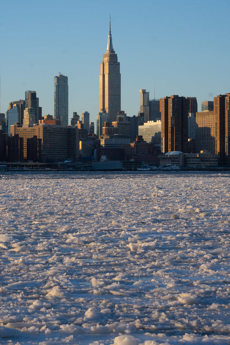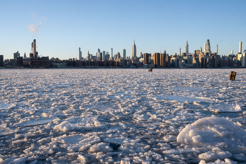 O gelo no East River continua com temperaturas teimosamente baixas na cidade .