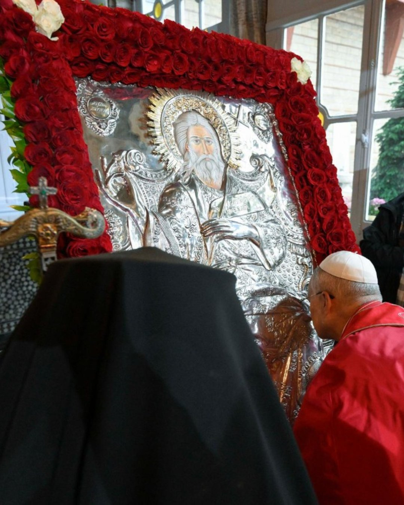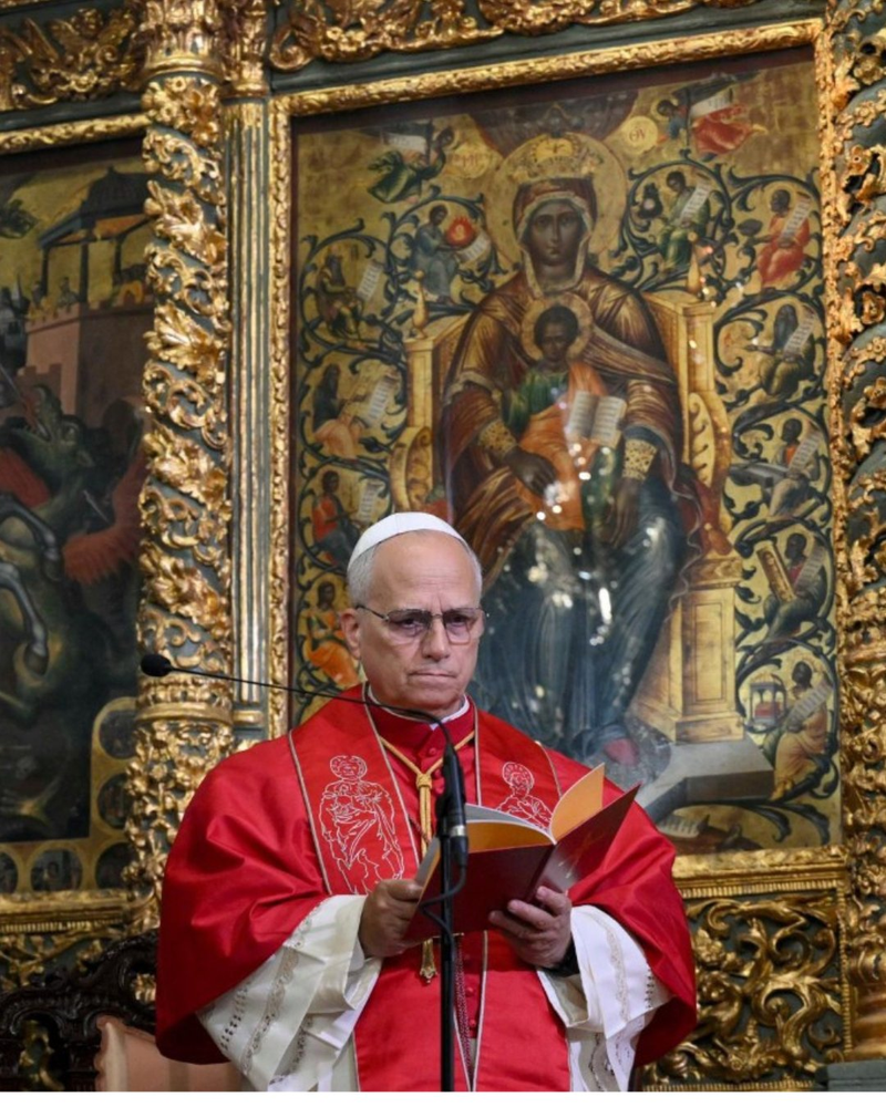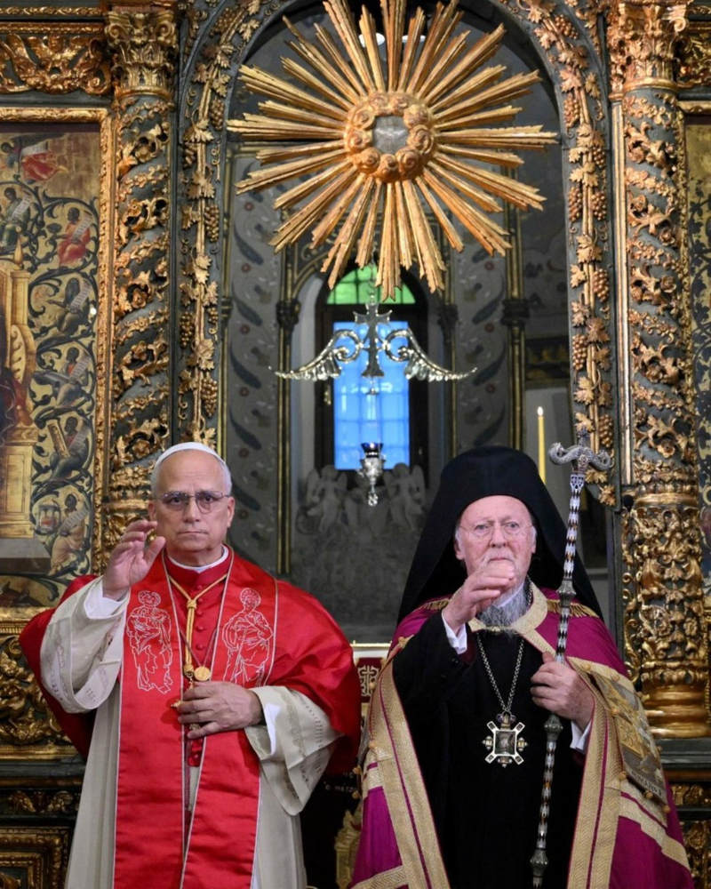 Papa Leão XIV e o Patriarca Bartolomeu I líder espiritual da Igreja Ortodoxa se encontram Igreja Patriarcal de São Jorge
