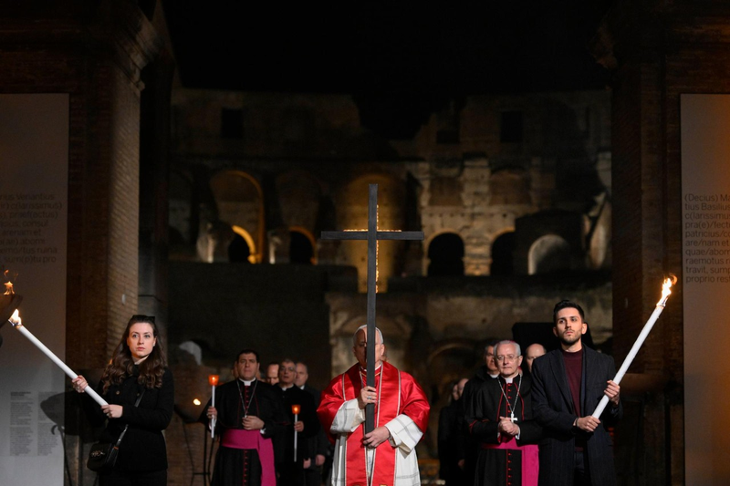 Papa Leão XIV presidiu o momento de oração nesta Sexta-Feira Santa no Coliseu carregando a cruz ao longo das 14 estações